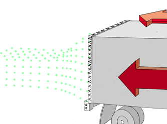 Estos vórtices son de aproximadamente 4 a 5 pulgadas de diametro y se extienden por poco más de 1 metro. Esto ayuda a reducir la turbulencia y la succión entre el tractocamión-remolque y en la parte posterior del remolque.